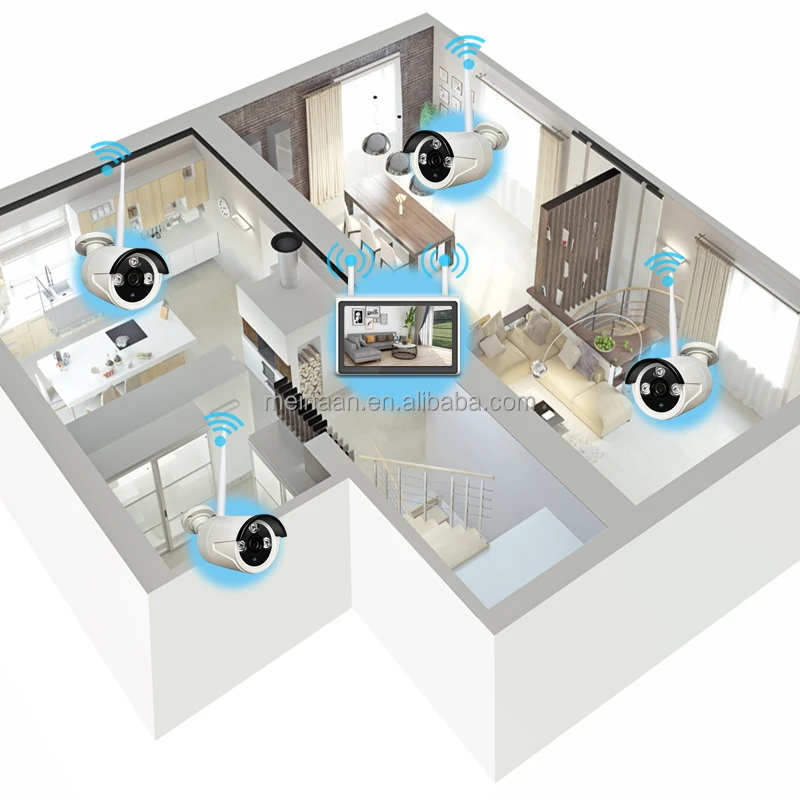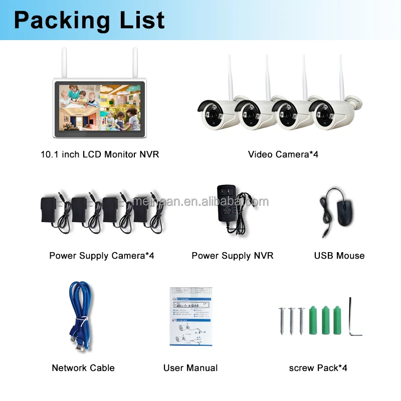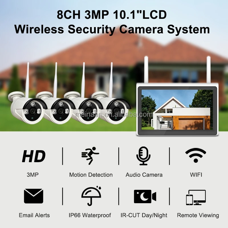 Eseecloud 3MP 10.1'' LCD 4CH Wireless WiFi Home Security Camera System Wireless WiFi CCTV NVR Kit Camera Surveillance Systems
